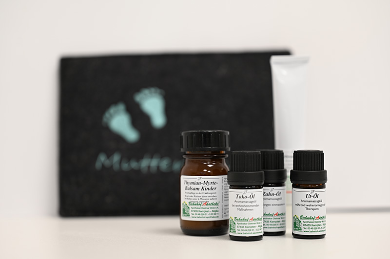 Bei uns erhalten werdende Mütter auf Wunsch spezielle Schwangerschafts-, Tocolyse-, Rückbildungs- und Stilltees sowie spezielle Kosmetik, Wärmekissen, Heilwolle oder angepasste Kompressionsstrümpfe.